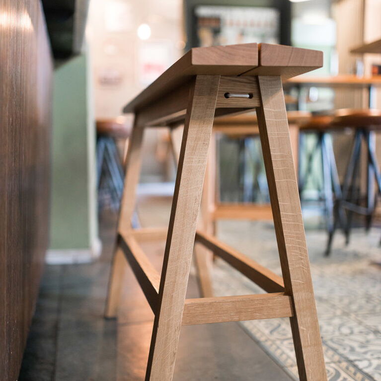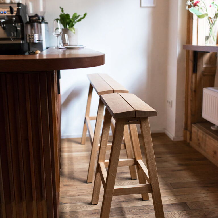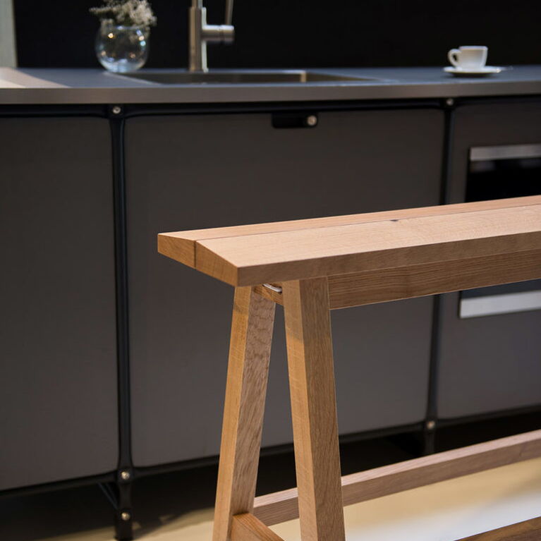Die Stehbank „Bock“ haben wir das erste Mal im MAK in Wien gesehen, uns sofort in das Produkt verliebt und für unsere neue Showroom-Küche bestellt.