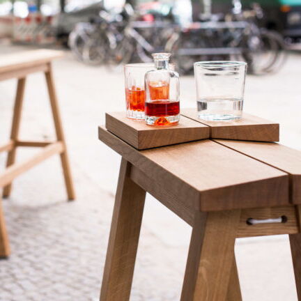Die Stehbank „Bock“ haben wir das erste Mal im MAK in Wien gesehen, uns sofort in das Produkt verliebt und für unsere neue Showroom-Küche bestellt.