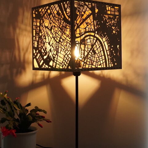 Die WOHN.FEE hat die „Stadtlampe“ in einem hippen Lokal entdeckt und war sofort vom Produkt begeistert: „Wien von oben“ sieht hinterleuchtet richtig toll aus