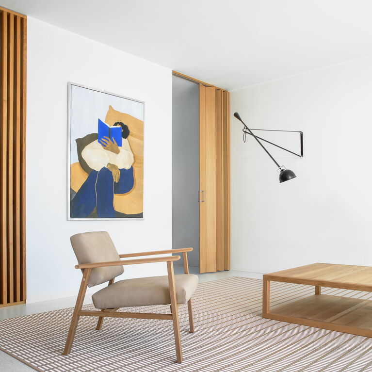 Die edlen Holzmöbel von NIKARI bestechen durch schlichtes Produktdesign und perfekte Verarbeitung. Aus der FRAME Serie wurde der neue Couchtisch FRAME LOW – klar und minimalistisch – präsentiert. Neu ist auch der Archetyp Lounge Chair von Jasper Morrison in einer speziellen Lederversion- auf dem Bild zu sehen mit einem wunderschönen Teppich von WOODNOTES. Bei diesen finnischen Teppichen aus Papiergarnen stand neben der Sommerfarbe GRASS GREEN als „Colour of the year 2024“ WILLOW BROWN im Mittelpunkt. Diese Teppiche passen sich unterschiedlichsten Umgebungen an und erden den Raum und damit auch deren Bewohner.