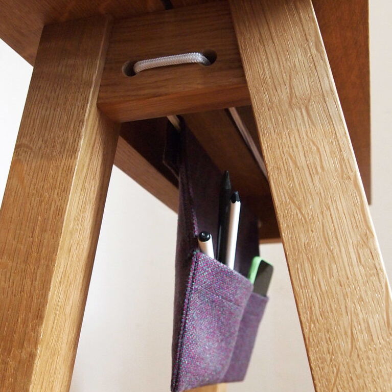 Bei Stehempfängen oder anderen Festlichkeiten können durch ein zusätzliches Tablett Getränke oder Ähnliches abgestellt werden. Kleidungsstücke finden ebenso ihren Platz und können auch in die Spanngummis unterm Sitz geklemmt werden. Für Kleinzeug kann weiters eine Hängetasche in die Spanngummis gehängt werden. Also vielseitig verwendbar und bis ins kleinste Detail gut durchdacht!