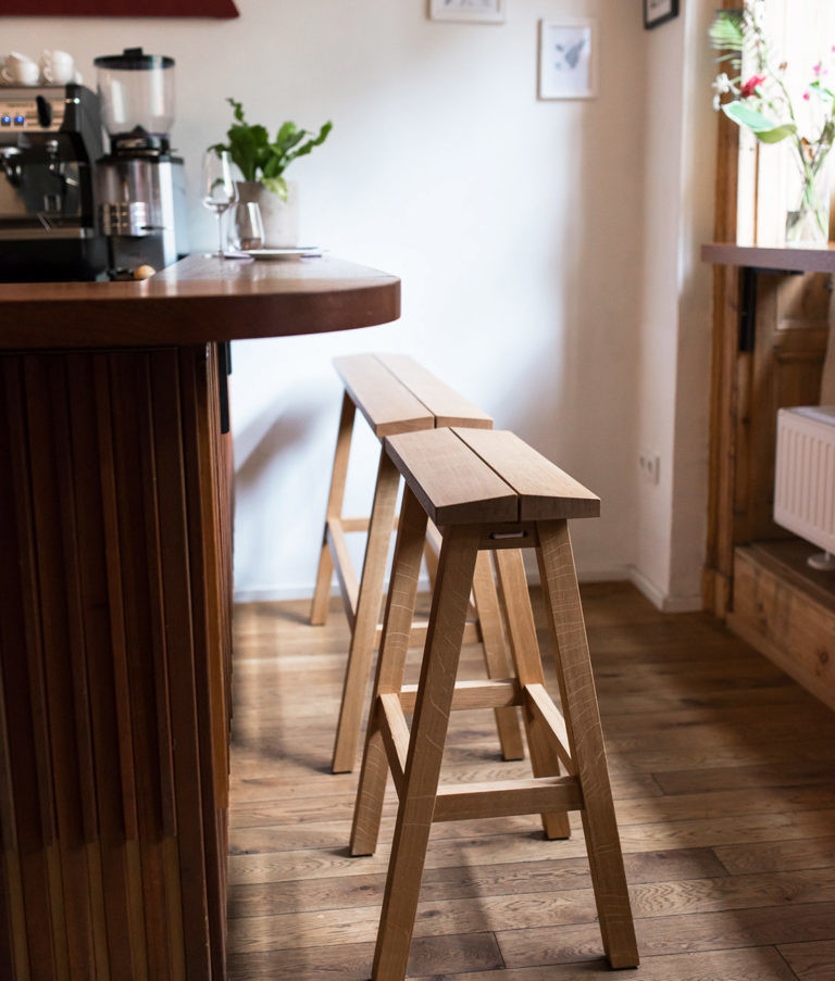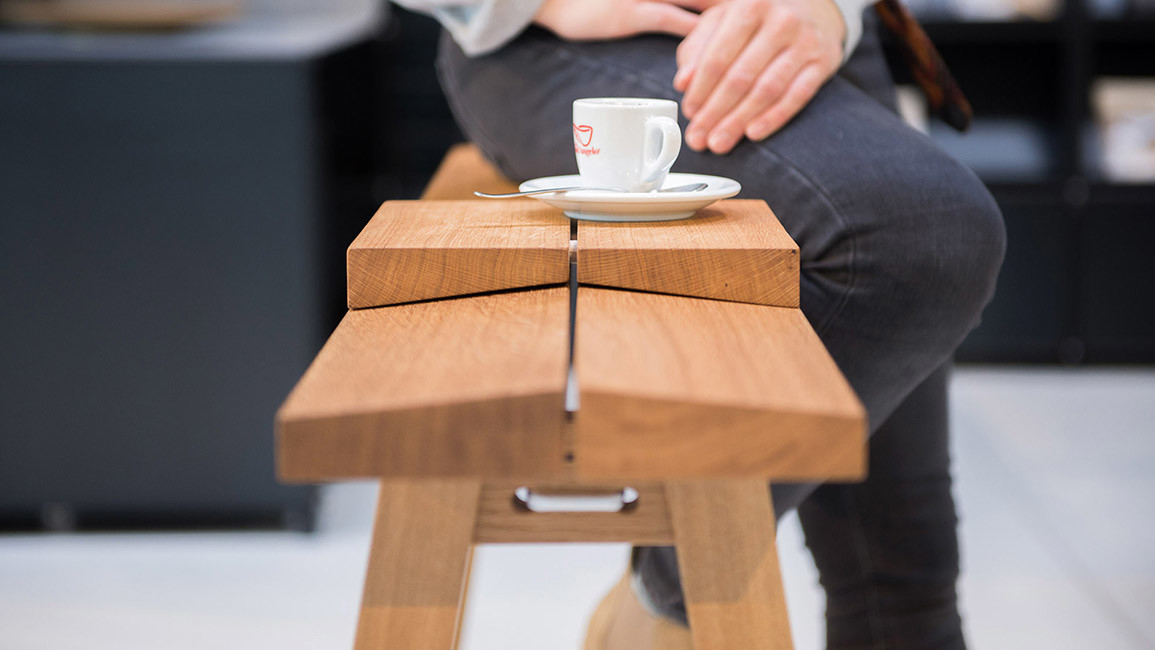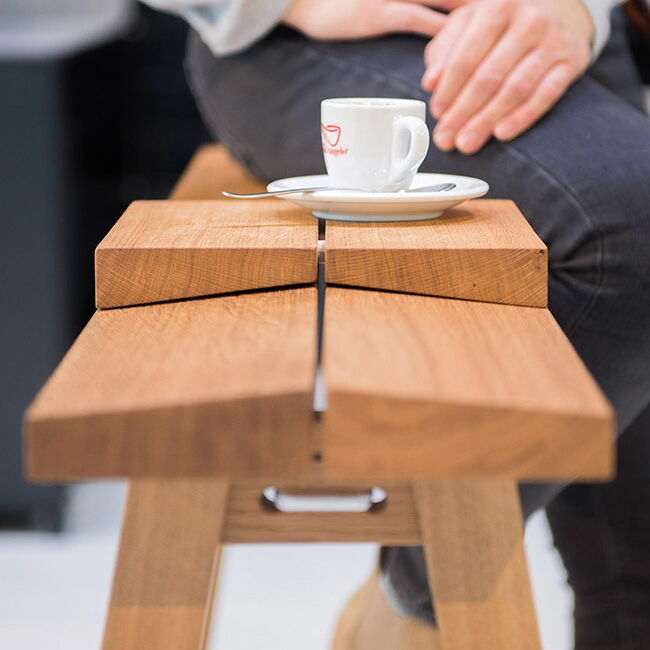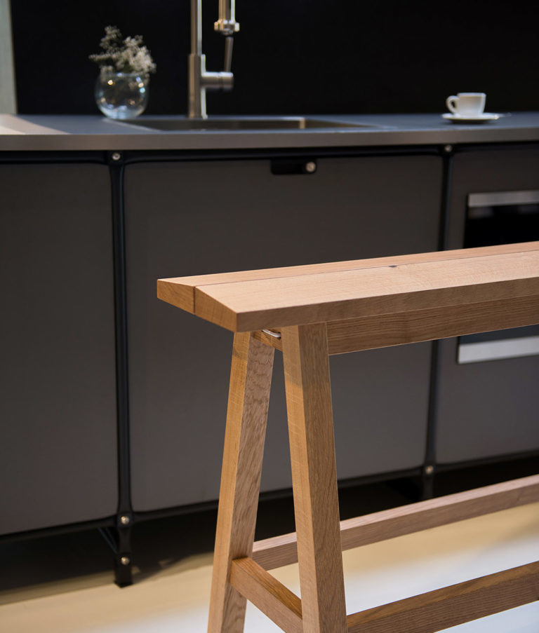 Die Stehbank „Bock“ haben wir das erste Mal im MAK in Wien gesehen, uns sofort in das Produkt verliebt und für unsere neue Showroom-Küche bestellt.