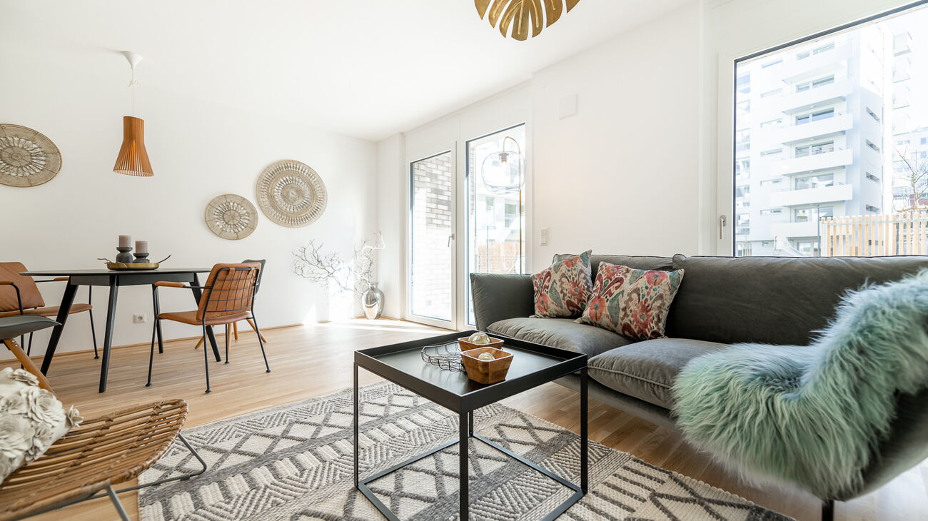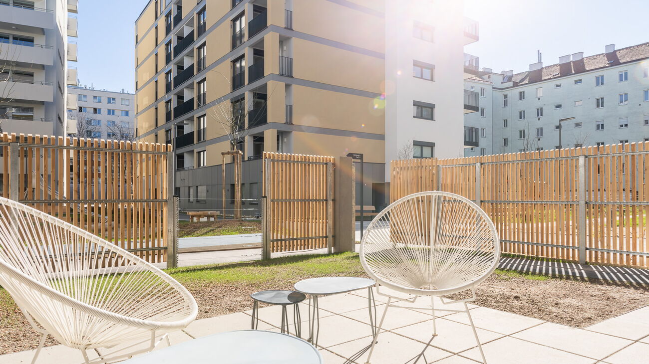 Diese Wohnanlage in Wien setzt neue Maßstäbe. Ein autofreier Zugang mit Grünflächen und eine perfekte Anbindung an U-Bahn und Supermärkte etc. zieht vor allem junges Publikum an. Der Bau selbst ist kein grauer Betonbau, sondern erinnert an die früheren Backsteinbauten. Hier sollte das Staging trendig und urban sein.